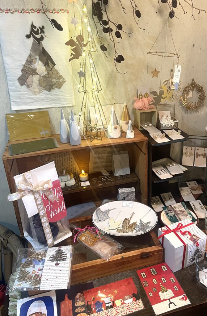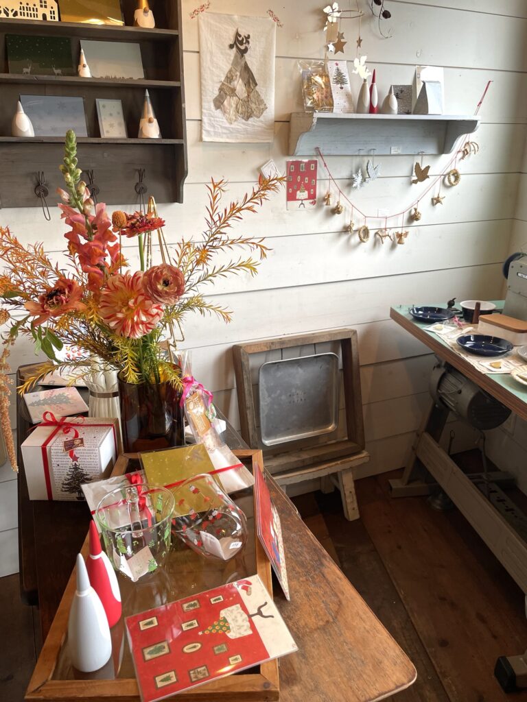 お花やネコモチーフの器、それとクリスマスに向けて